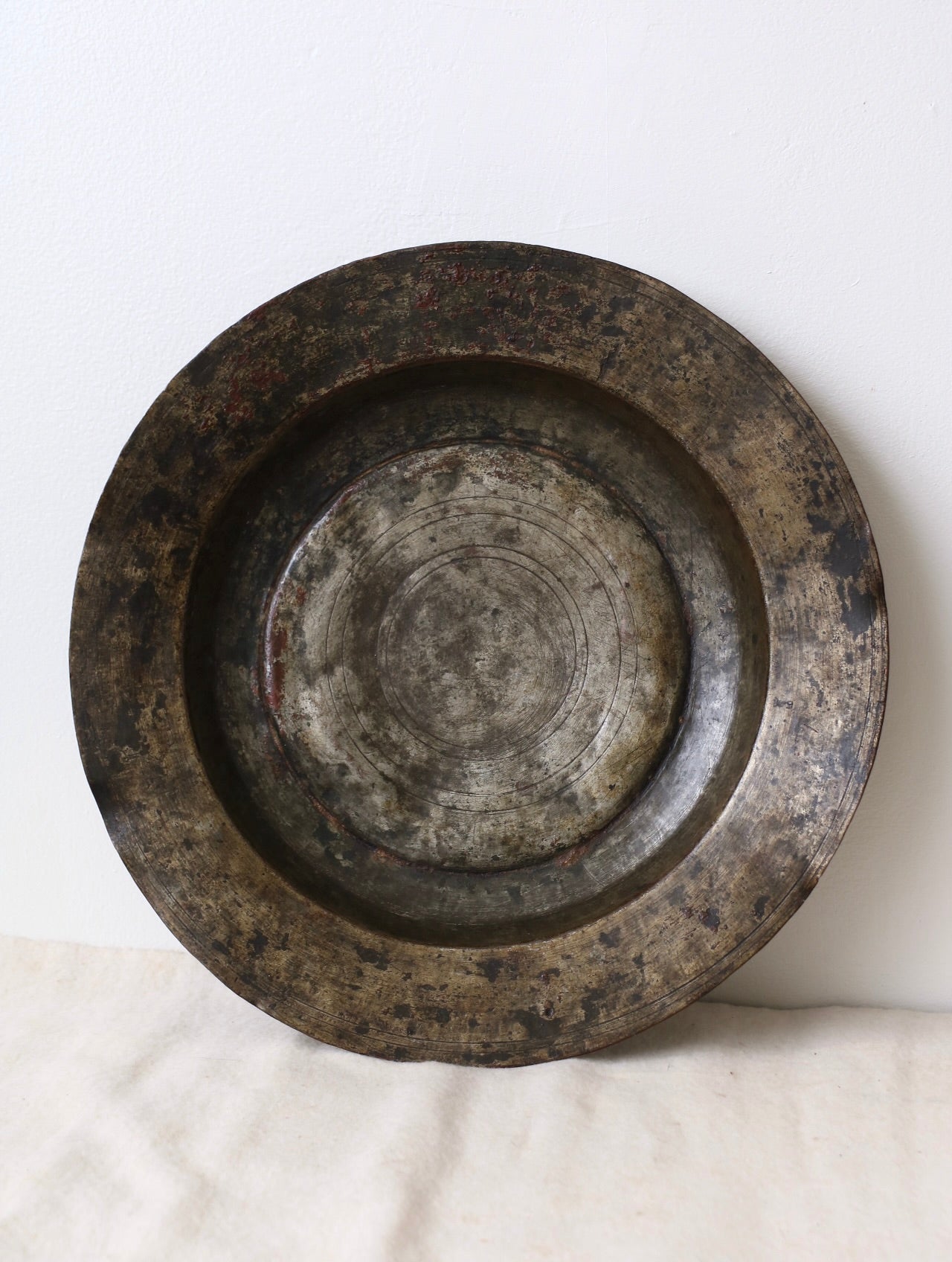 二条線走る銅の大皿