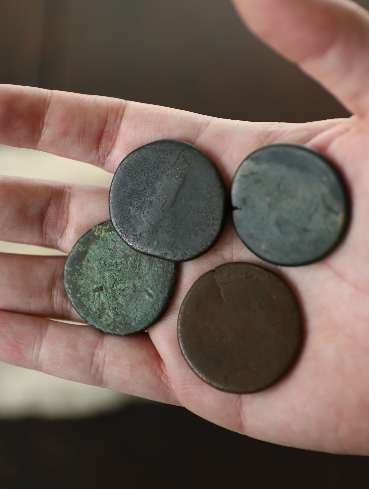 古代ローマの貨幣摩耗により滑らかに。厚みがよいよ。擦り減ることで美しくなることだってある。人間も然り、かな。個性の異なる四枚を選んできました。211 B.C. ~ROME____________