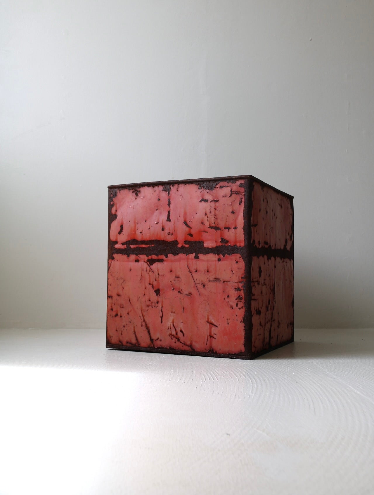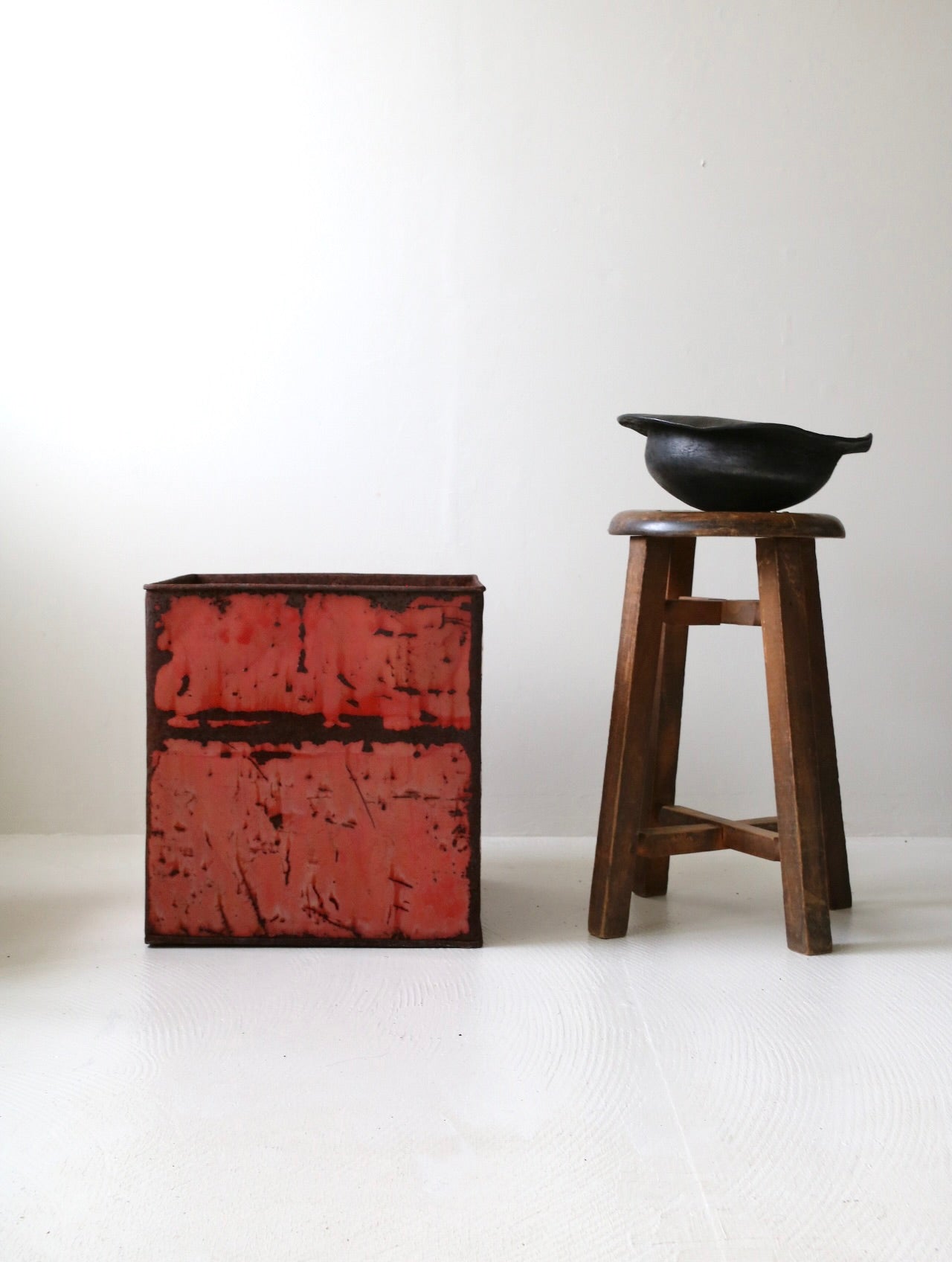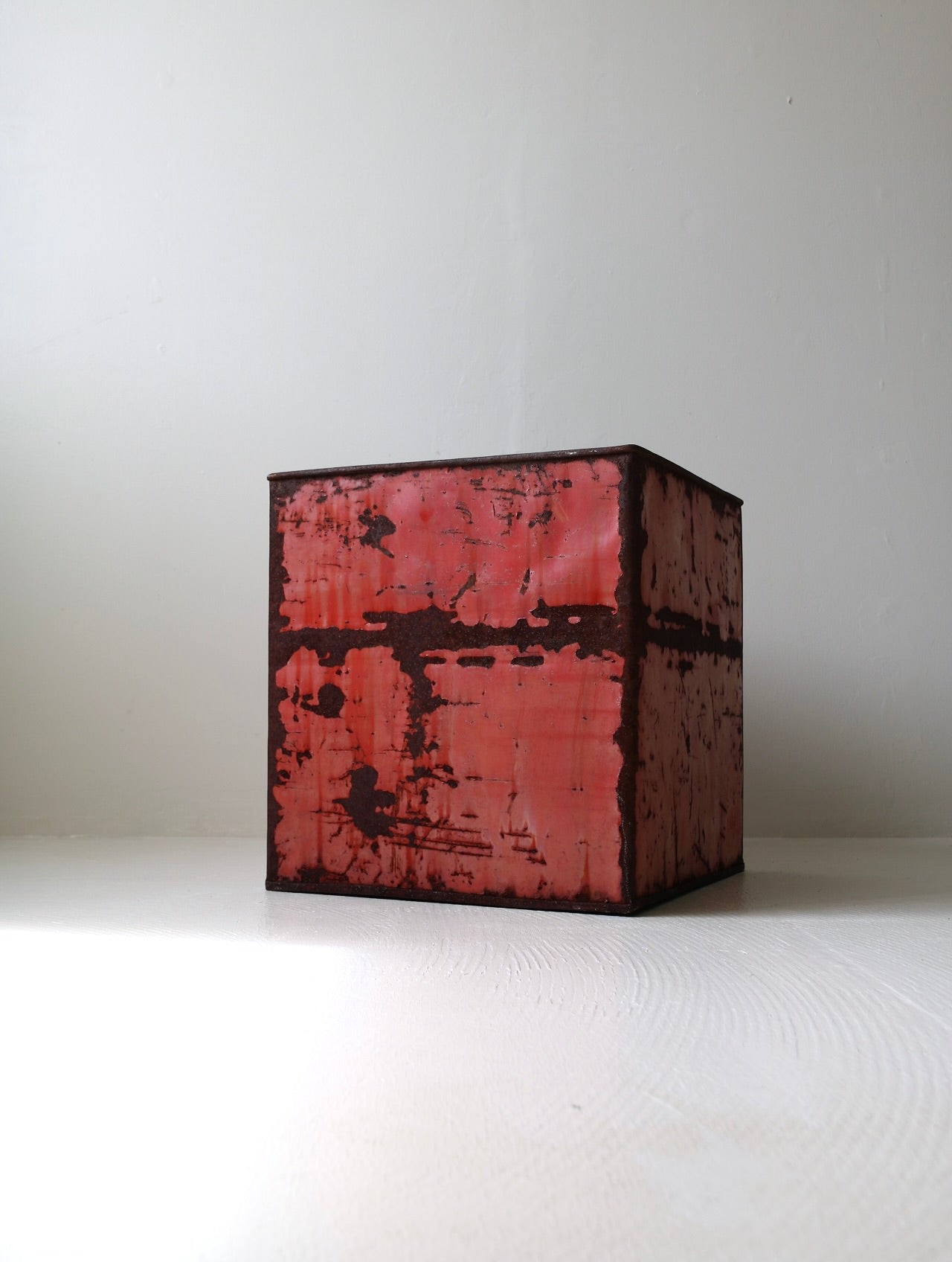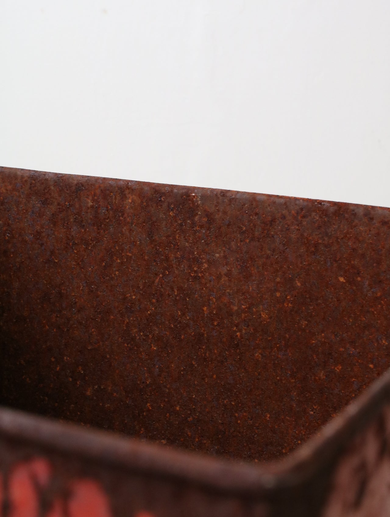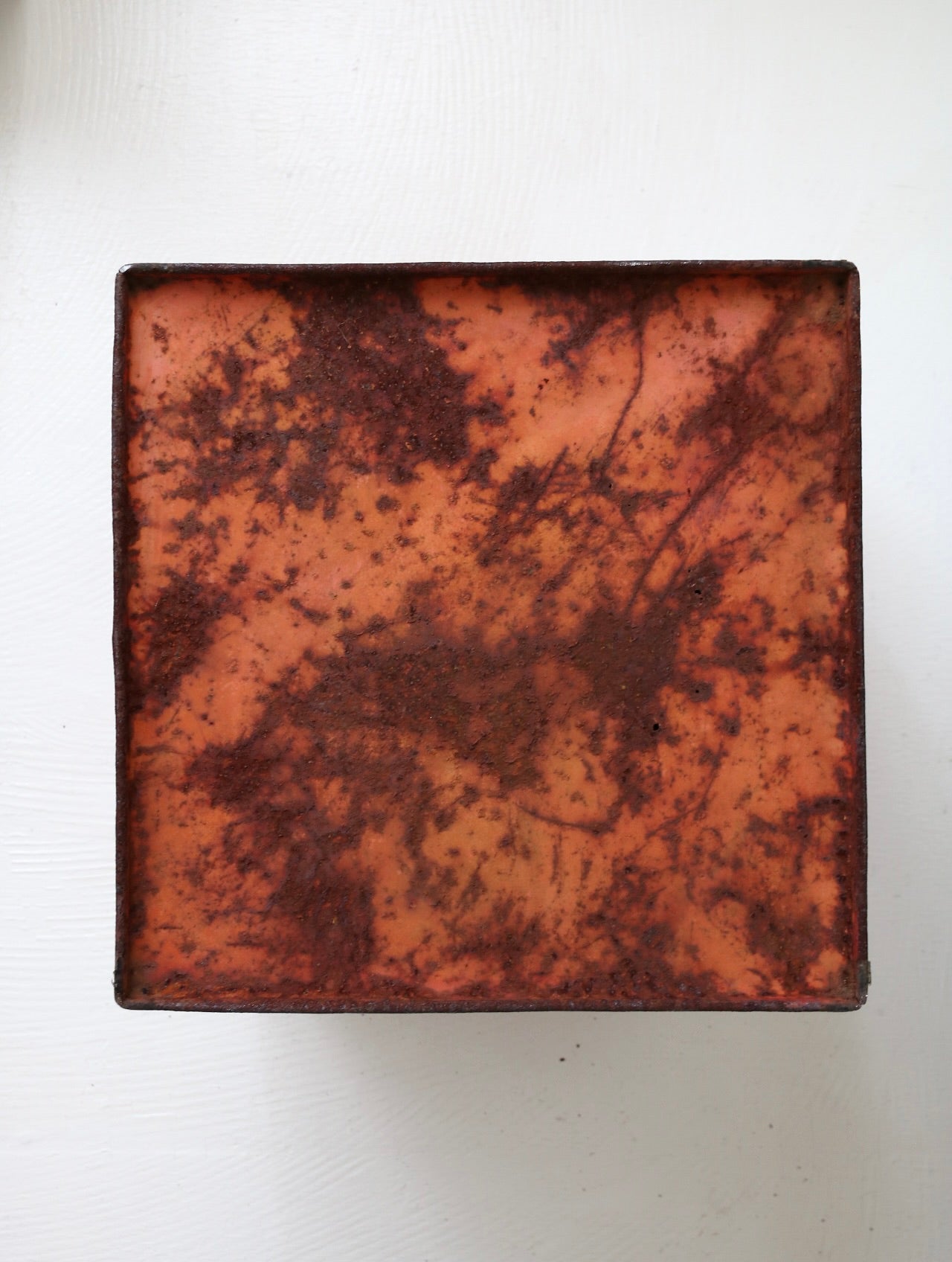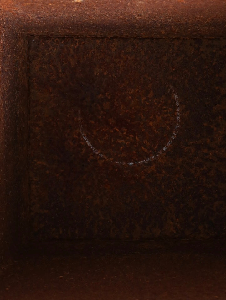 サラッとした空間にポンと置いておきたい。裏返すとまた違った朱色の錆肌。展示台へと変わる。容れ物とすると良さは消えるかもしれない。あなたなら、どう迎え入れるか。