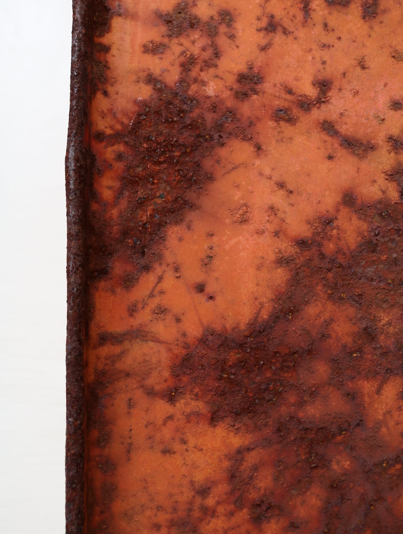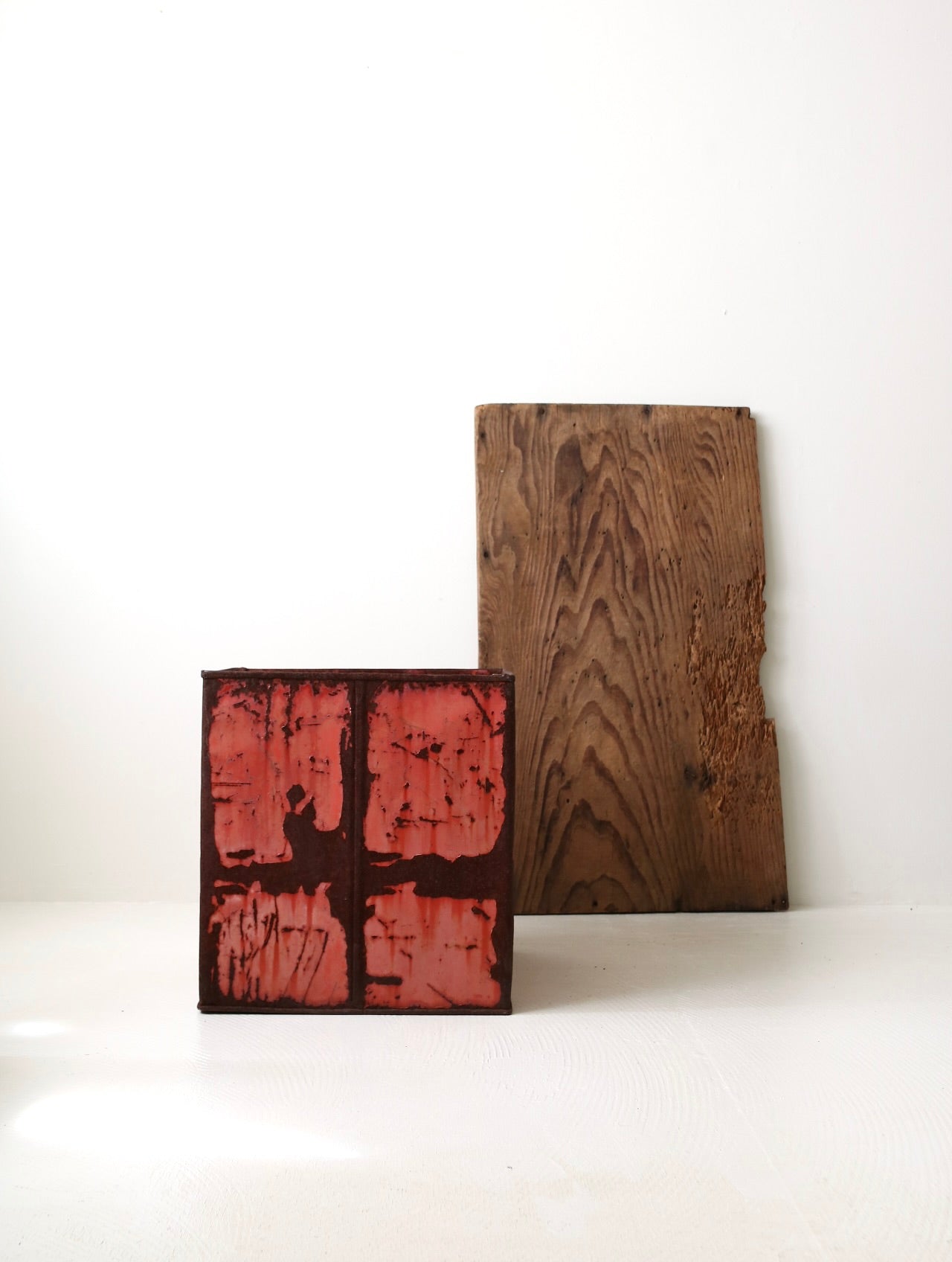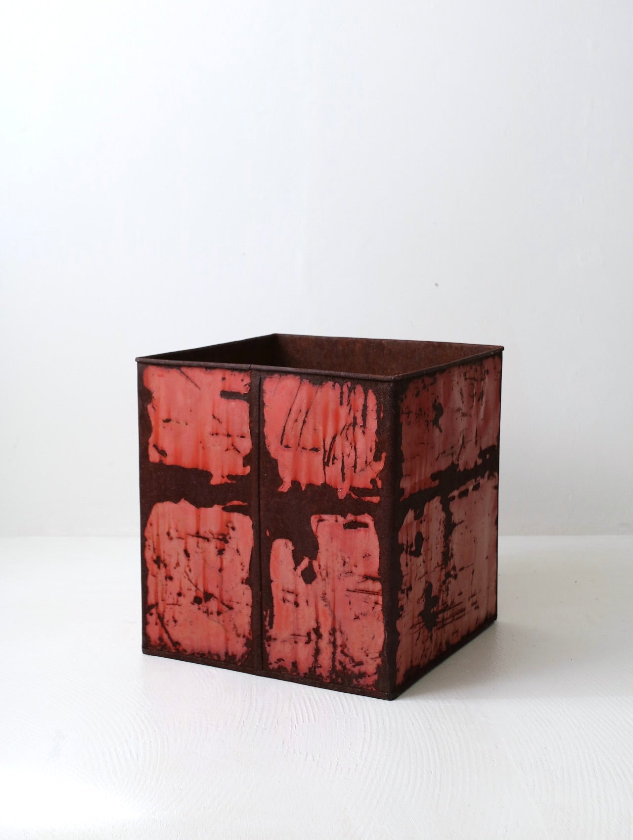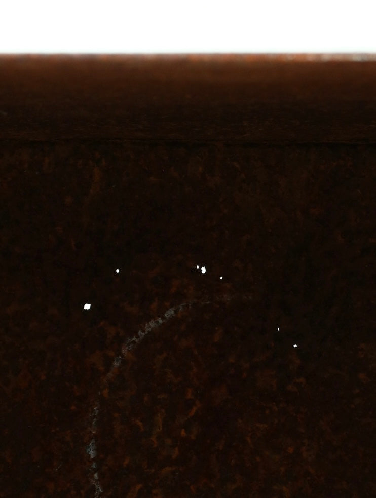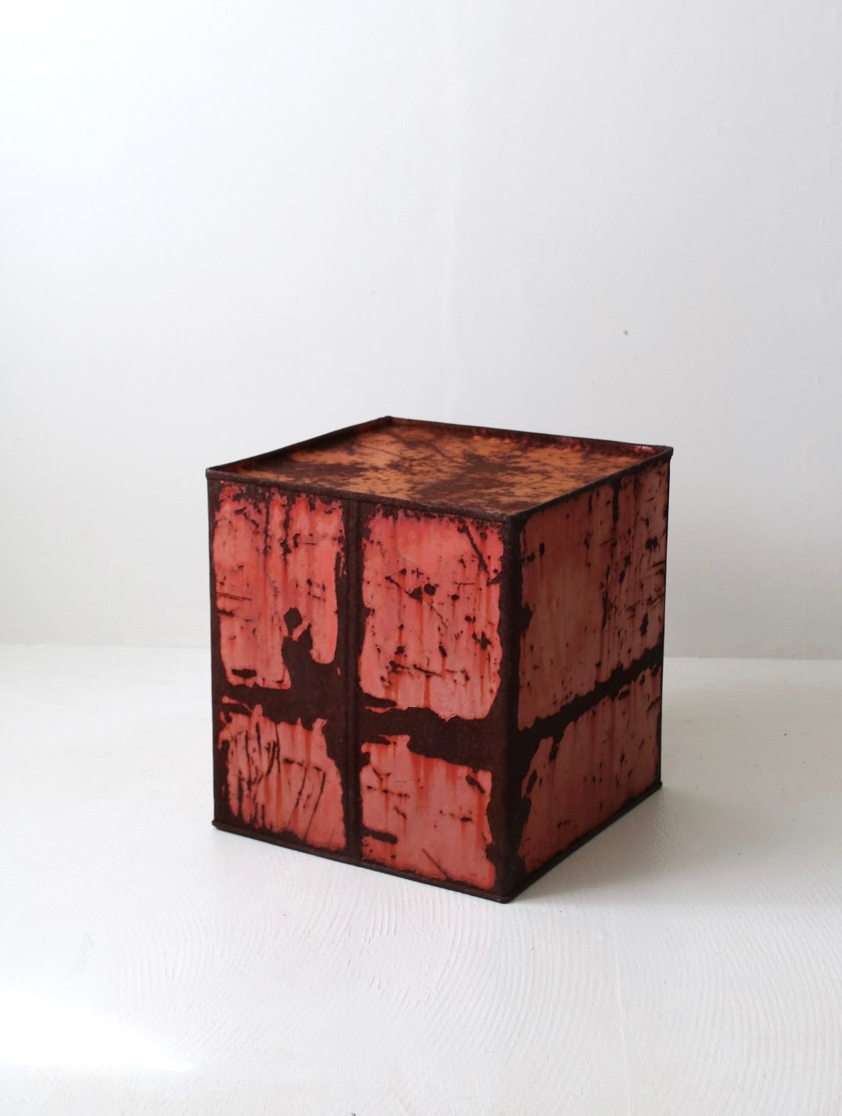 サラッとした空間にポンと置いておきたい。裏返すとまた違った朱色の錆肌。展示台へと変わる。容れ物とすると良さは消えるかもしれない。あなたなら、どう迎え入れるか。
