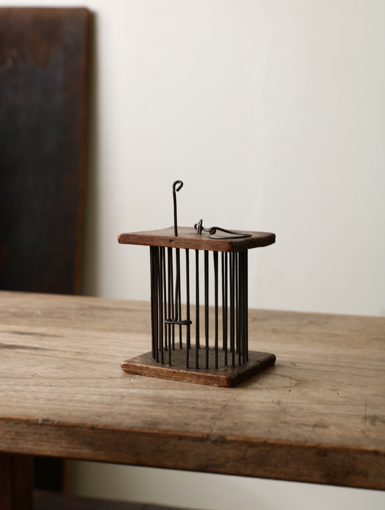 オランダの風俗画でも描かれているのを見たような気もするのですが、誰の作品であったか思い出せず。検索にもかからず🧐摘みを上げると一本分だけの開閉。サークル状に囲まれた小さな虫籠。鳥籠同様に私が求める静けさを纏ってくれています。